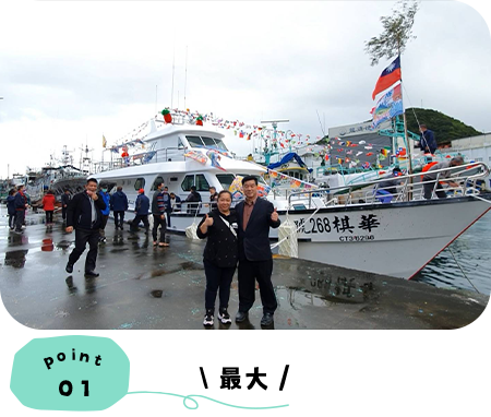 花蓮華棋268號,以最高規格、量身打造而成採用雙引擎1600P馬力呈現最穩定的奔馳感,表現出最佳的抗浪性,在任何速度中都能保持超高水準的穩定度!