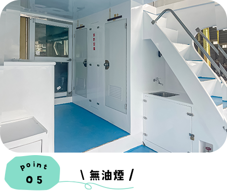 排煙器設計在船底部,較聞不到油味~多年賞鯨經驗,聞到油煙味真的會立馬導致暈船喔!
