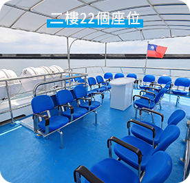 2樓夾板讓每位遊客皆有獨立式座位,使其賞鯨時若有小小暈船時,至少位置坐起來很舒適。